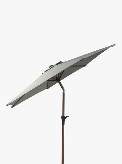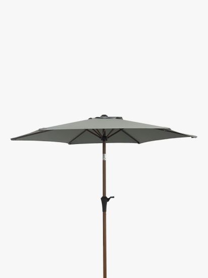 - This garden parasol offers targeted sun protection with an easy-winding mechanism and adjustable tilt. The parasol has a rain canopy with UV50+ sun protection and a corrosion-resistant aluminium pole with a stylish wood-effect finish. Shock-resistant ribs complete this sturdy design.