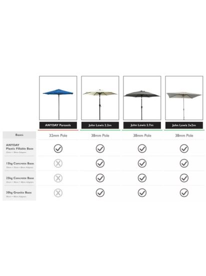 - Requires a 15 kg base. Choose the right parasol base weight.