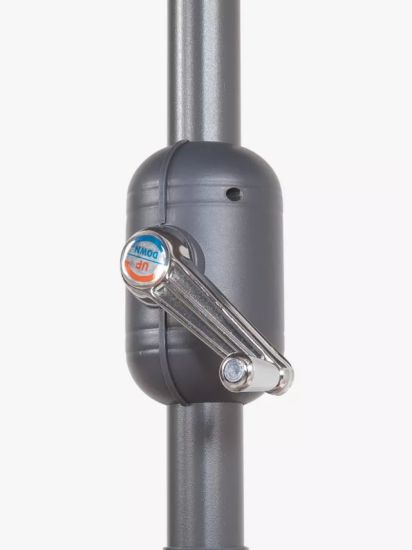 - Made with a sleek powder-coated charcoal grey steel frame and six sturdy steel ribs, this parasol combines durability and elegance. The 160g/m2 canopy provides wide coverage, while vents enhance airflow to keep you cool on hot summer days. Use the tilt mechanism to control shade.